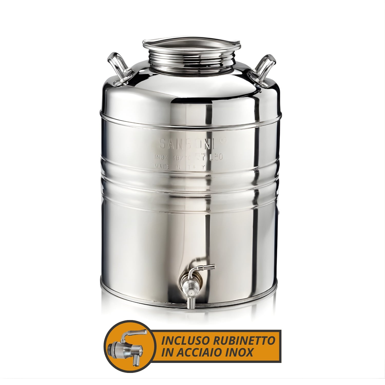 Contenitori Aggraffati da 25 litri con predisposizione e rubinetto incluso. I nostri fusti aggraffati sono progettati per la conservazione di alimenti liquidi, ad esempio per la conservazione dell'olio di oliva.. Il materiale utilizzato di prima scelta è l’acciaio inox Aisi 304.