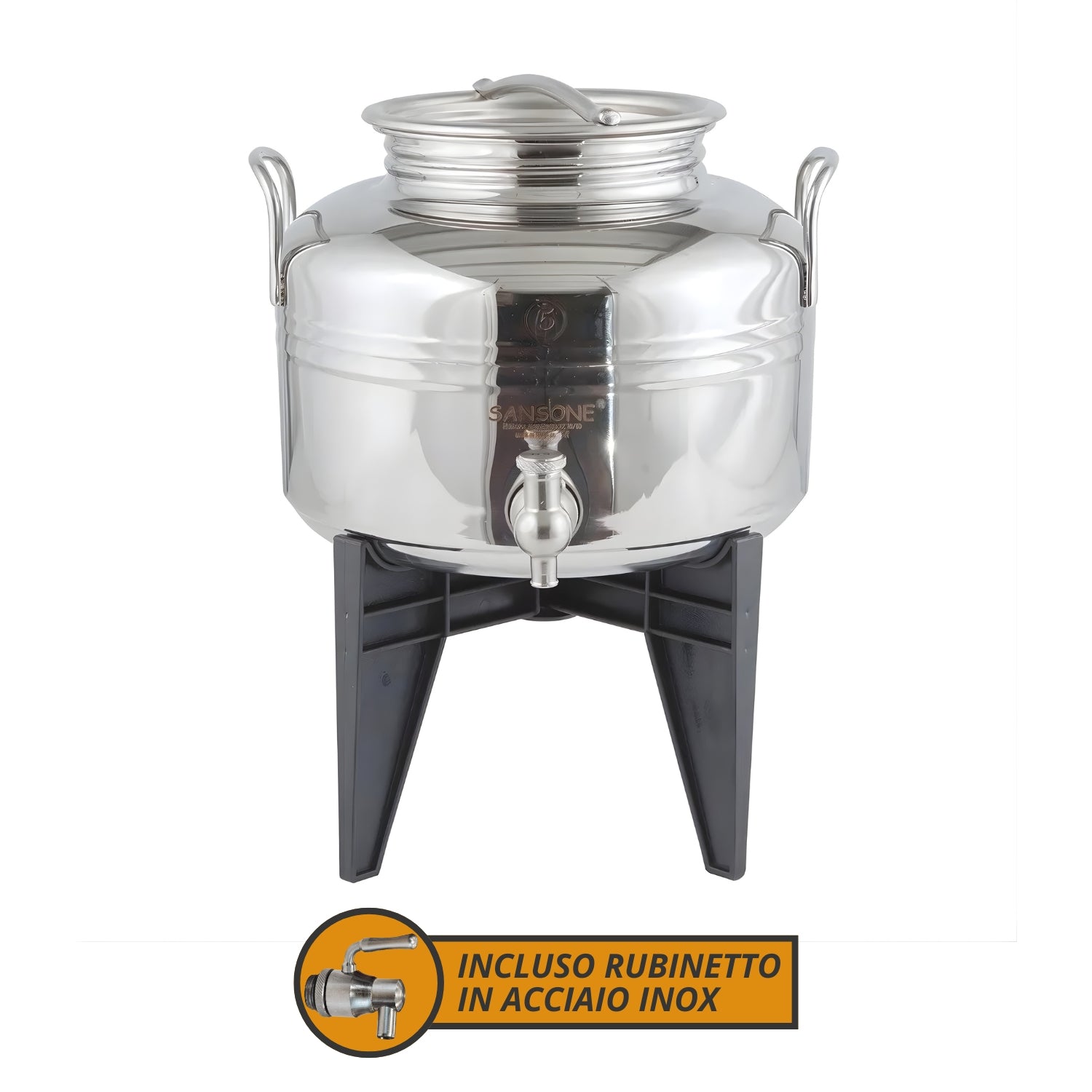 Sansone Il Gioiello, Contenitore da 5 litri in acciaio con rubinetto e stand.